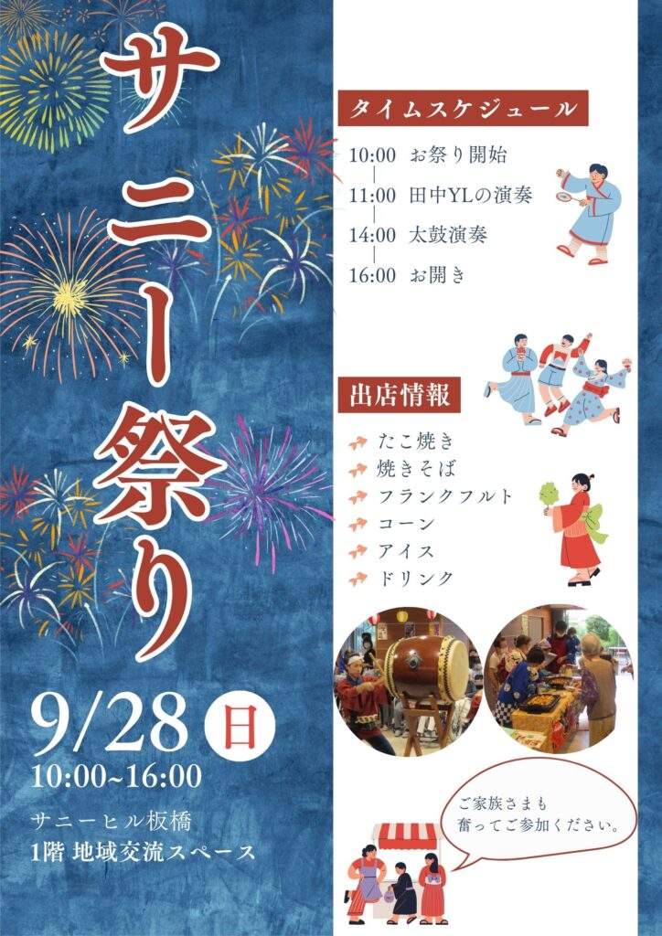 今年もサニ-ヒル板橋の納涼祭「サニー祭り」を9月28日(日)に開催いたします。