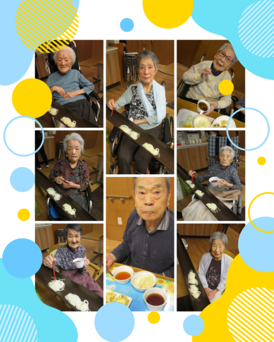 夏の風物詩の流しそうめんに、皆様の楽しそうな表情が見られました。