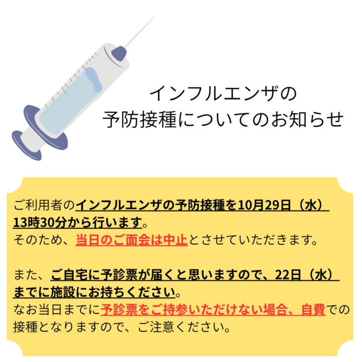 インフルエンザの予防接種についてのお知らせ