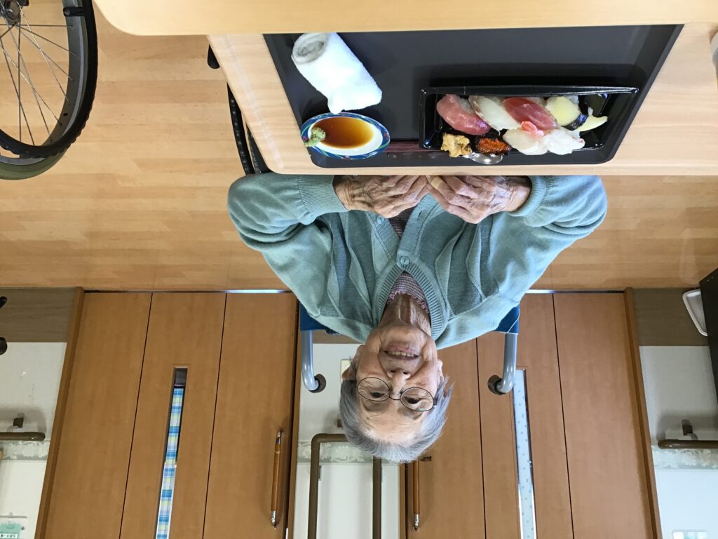 皆さんでお寿司行事を行いました!一部のご利用者は「お寿司の日はまだなの?」と待ちかねている様子も見られました。