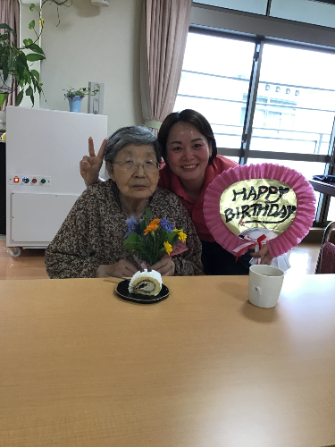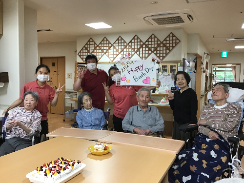 職員手作りケーキでお誕生日をお祝いしました。